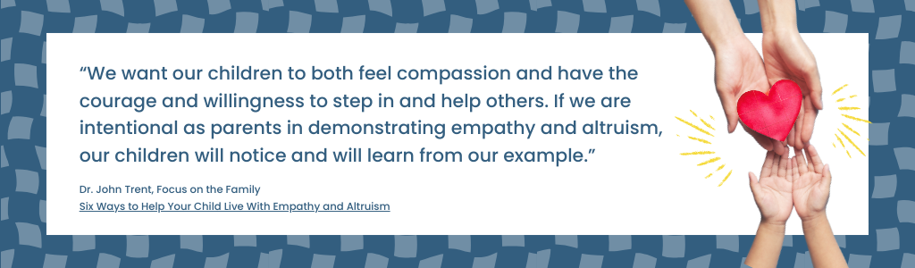 Before children can show empathy to others, it helps for them to understand their own emotions first. Focus on the Family encourages parents to help children name what they are feeling, whether it is frustration, sadness, or excitement, so they can begin to recognize those same feelings in others. Try asking your child, “What word would you use to describe how you are feeling right now?” It is a small question that opens up a big conversation.